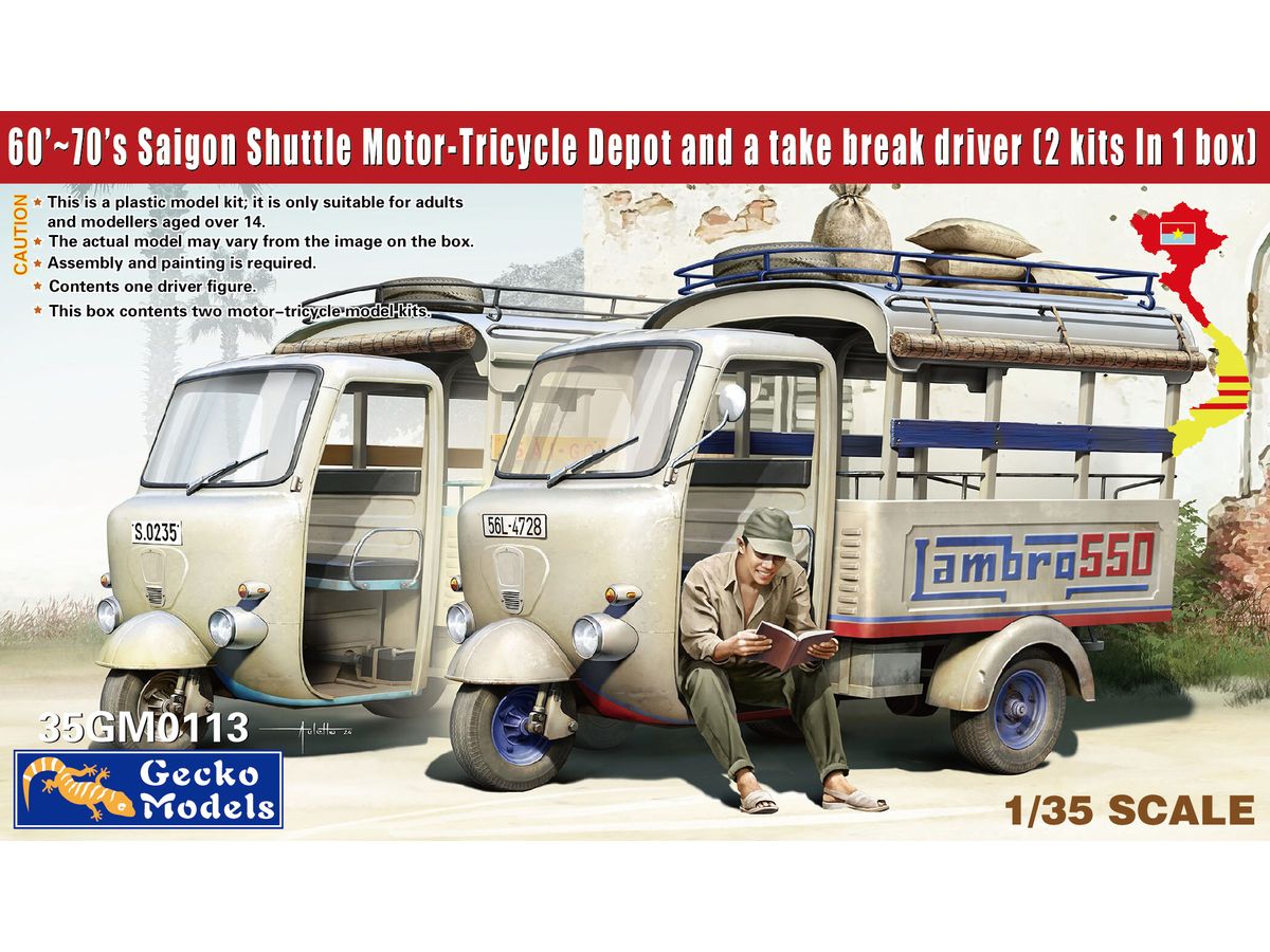 1/35 サイゴン ランブロ550 シャトル 三輪自動車w/休憩中の運転手 1960-70年代 (2両セット、フィギュア1体)