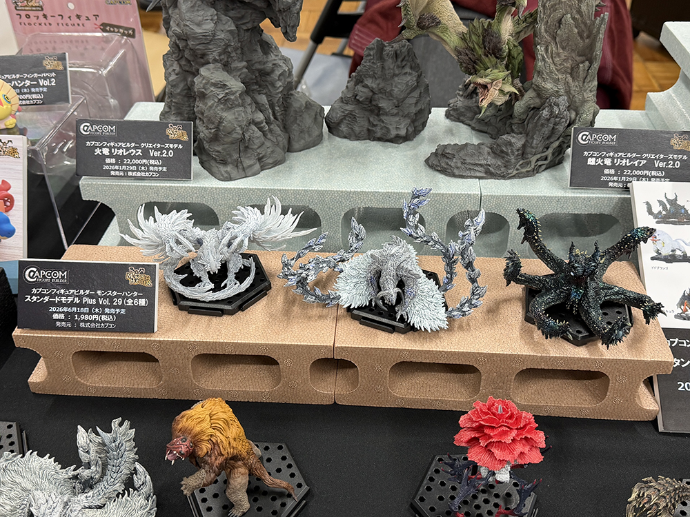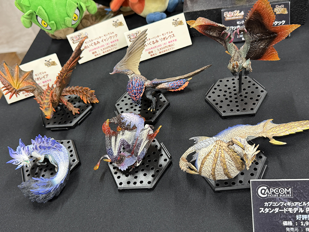 特に目を引いたのは、「カプコン フィギュアビルダー クリエイターズモデル」 シリーズ。《雌火竜 リオレイア Ver.2.0》《火竜 リオレウス Ver.2.0》など、どれもポージングがダイナミックで、造形の細かさや塗装の美しさが圧巻でした。
