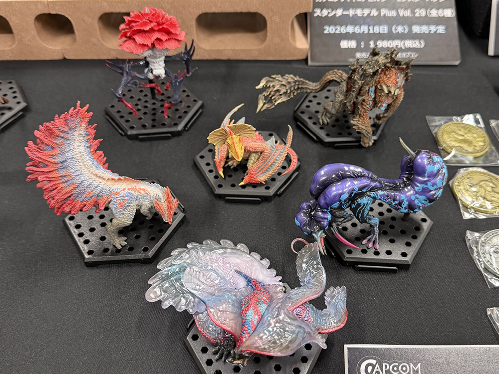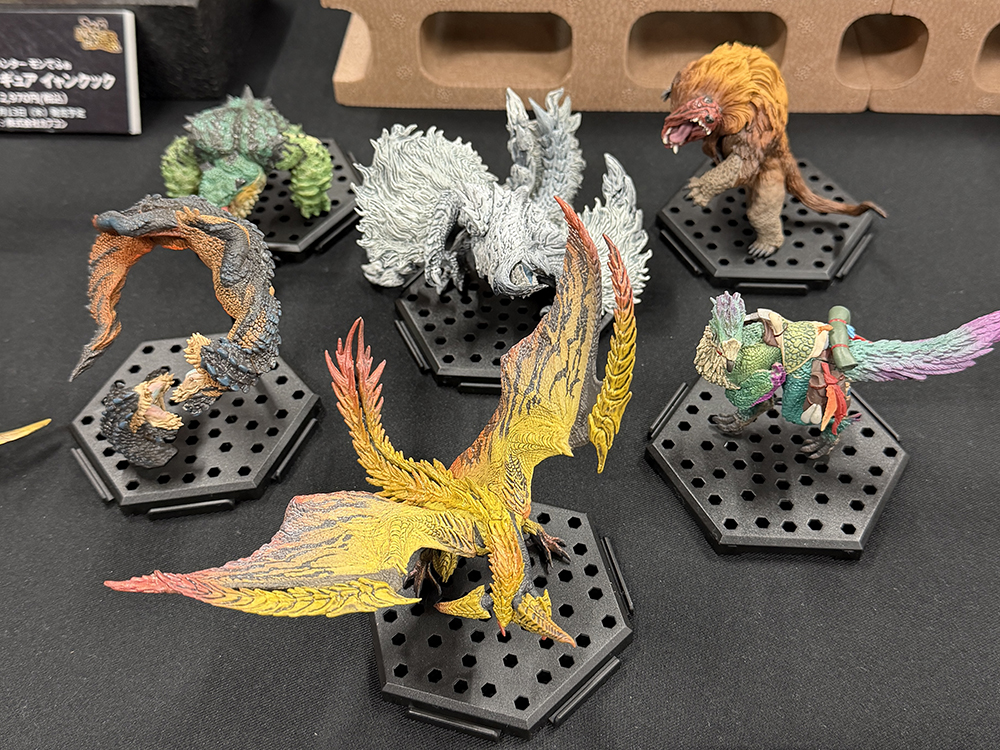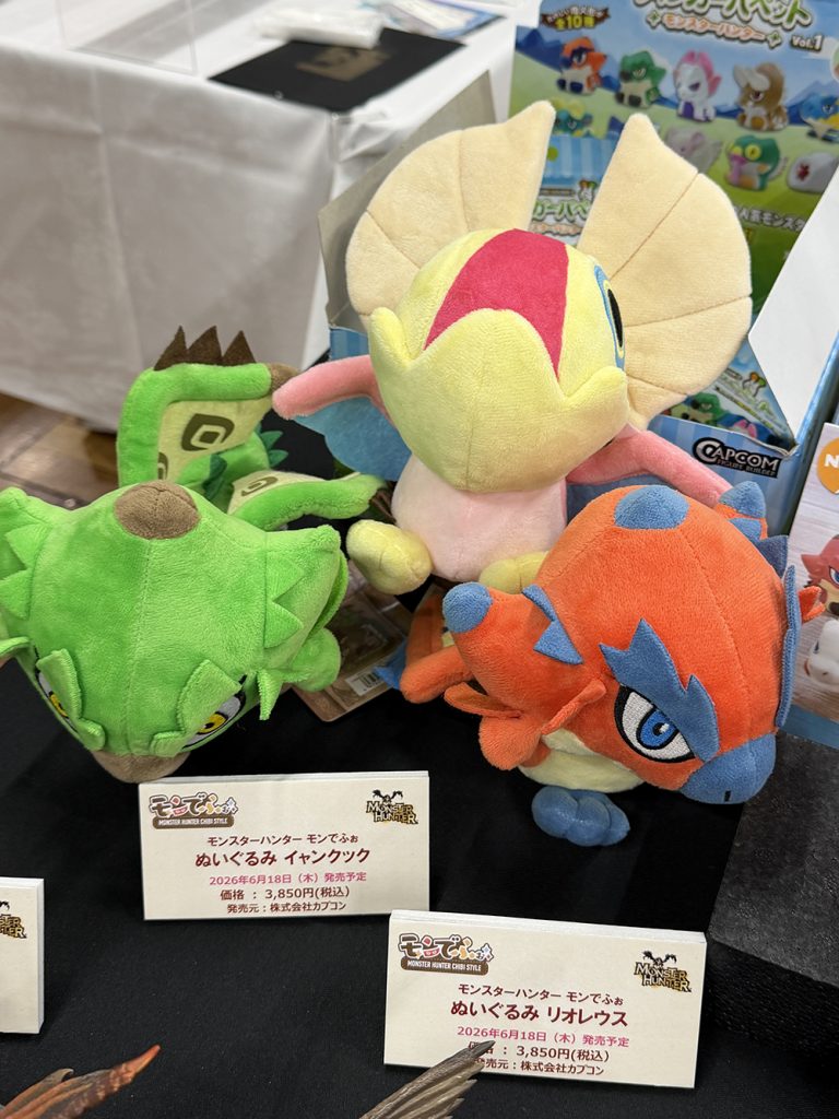 今回は 『モンスターハンター』 系アイテムが中心で、迫力あるフィギュアからかわいい系の雑貨まで、幅広く展示されていました。