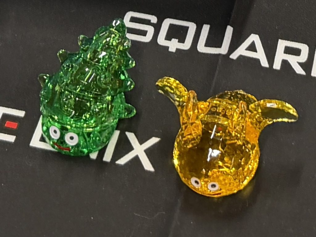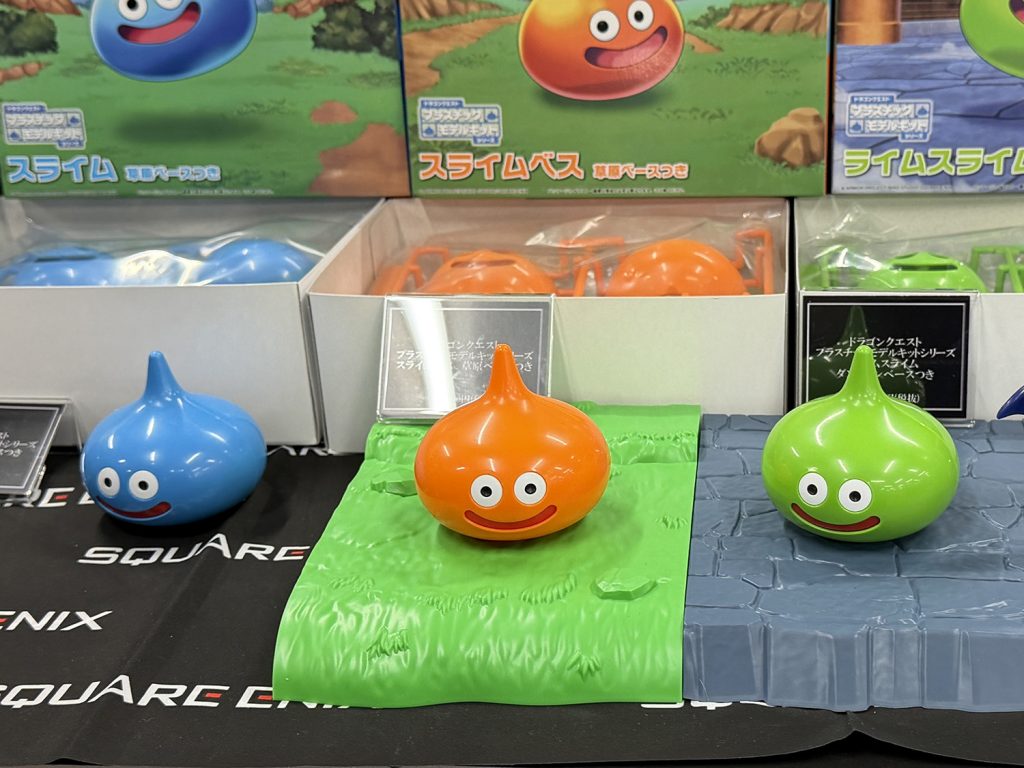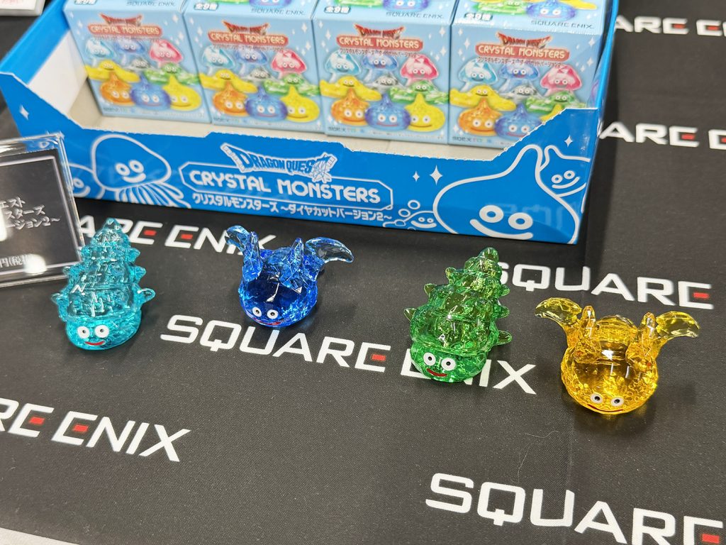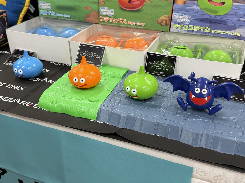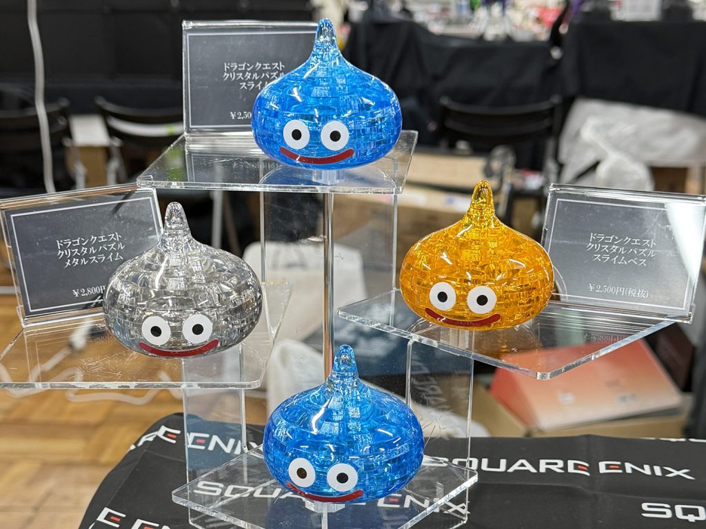 今回も「ドラゴンクエスト」シリーズをはじめとしたキャラクターアイテムが目立ちました。キラキラしたスライムのクリスタルパズルや、簡単に組み立てられるスライムやドラキーのプラモデル、かわいいペット用ベッドなど、親子でも楽しめるラインナップが印象的でした。実際に組み立てた見本も展示されていて、どれもとてもきれいで可愛かったです。