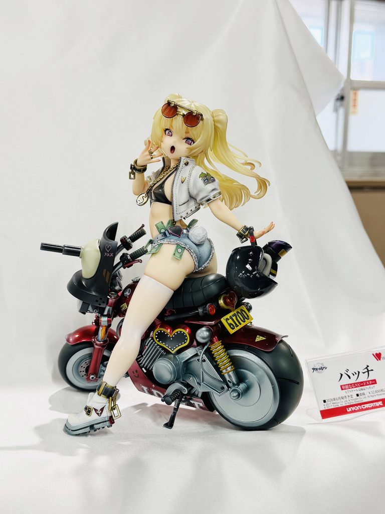 ガール系フィギュアの新作等が多数並び、リアル系では INART バットマン(ダークナイト ライジング)1/12スケールがとくに注目を集めていました。1/12とは思えない精密さで、造形・塗装ともにクオリティが高く、このスケールのリアル系のフィギュアは珍しいので、ぜひ今後とも注目してほしい、との担当者さんのお話。また、ユニオンクリエイティブさん関連会社のアイテムも展示されており、幅広いラインナップを楽しめるブースでした。